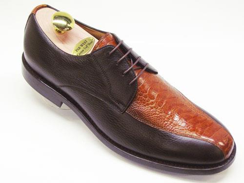 White Calf with Cognac Alligator Plug & Backstay. This shoe has a rubber sole.